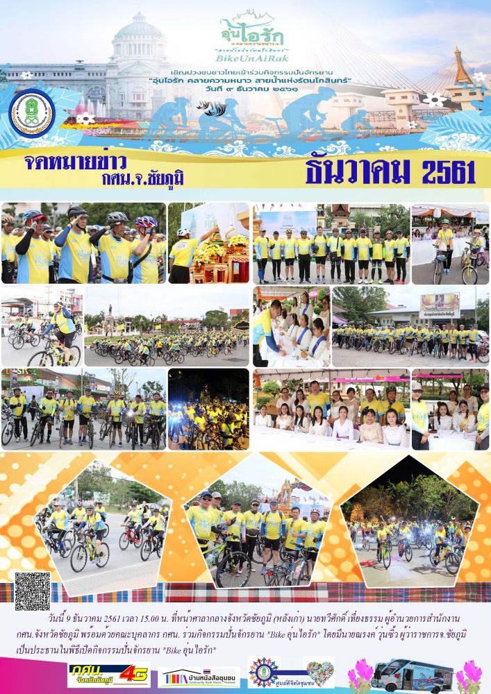 ข่าวประชาสัมพันธ์และกิจกรรม นายทวีศักดิ์ เที่ยงธรรม ผู้อำนวยการสำนักงาน กศน.จังหวัดชัยภูมิ พร้อมด้วยคณะบุคลากร กศน. ร่วมกิจกรรมปั่นจักรยาน \"Bike อุ่นไอรัก\" โดยมีนายณรงค์ วุ่นซิ้ว ผู้ว่าราชการจ.ชัยภูมิ เป็นประธานในพิธีเปิดกิจกรรมปั่นจักรยาน \"Bike อุ่นไอรัก\"