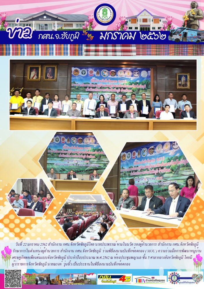 ความร่วมมือการพัฒนาหมู่บ้านเศรษฐกิจพอเพียงต้นแบบจังหวัดชัยภูมิ ประจำปีงบประมาณ พ.ศ.2562