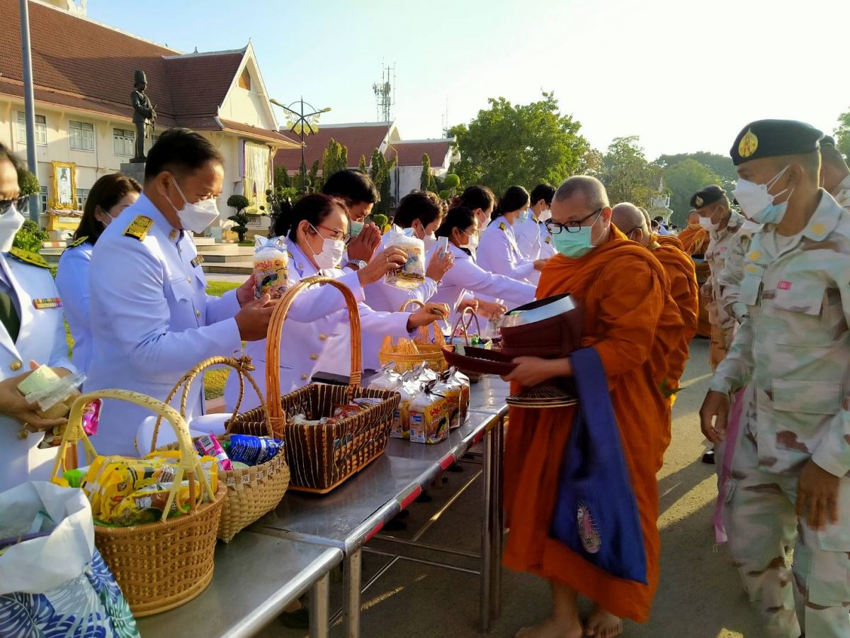 ร่วมพิธีทำบุญตักบาตรถวายพระราชกุศล พิธีวางพานพุ่มดอกไม้และถวายบังคม เนื่องในวันคล้ายวันพระบรมราชสมภพ